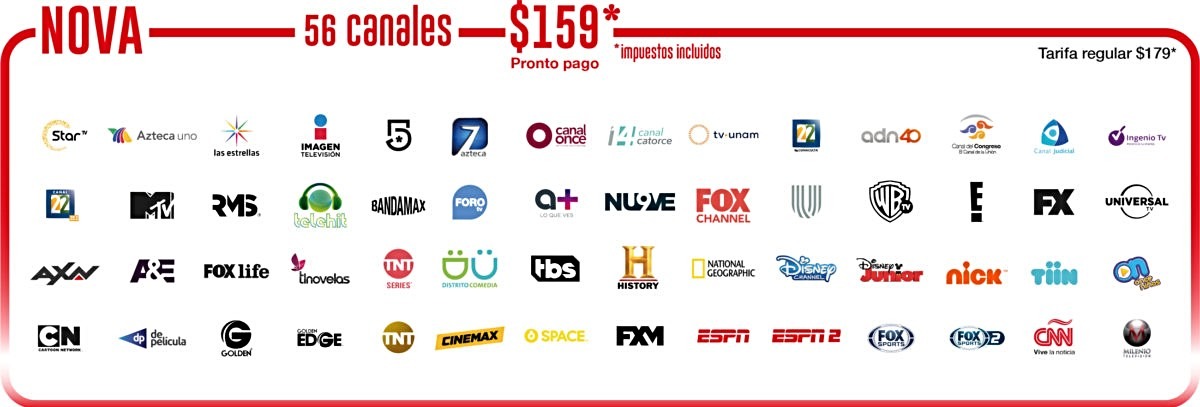 Todos los paquetes de STARTV cuentan con las señales de TV radiodifundidas obligatorias a servir por concesionarios de televisión restringida vía satélite, mismas que se retransmiten de manera gratuita, no discriminatoria, en forma íntegra y sin modificaciones.